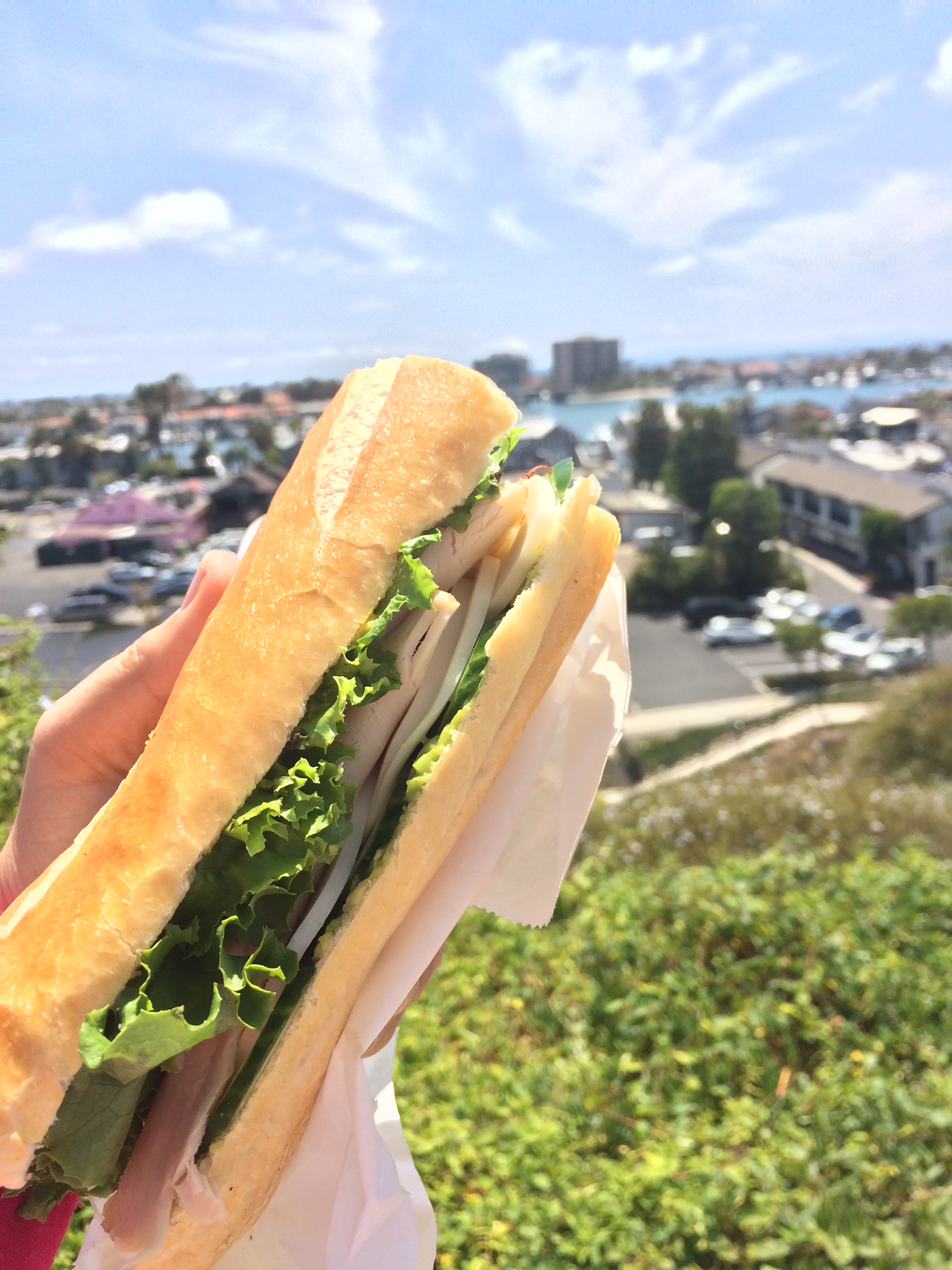 Though it was a hard decision, my sandwich was composed of turkey, lettuce, avocado, cucumber, and yellow mustard on a 6-inch baguette. The mashed avocado was smoothed onto the crunchy, golden baguette and layered with Romaine lettuce, deli turkey, and mustard. The diagonal-cut cucumber allowed for the perfect hint in every bite. After building my sandwich, I took a short walk to a nearby park and ate my sandwich while overlooking Balboa Island—an end to an already blissful day.